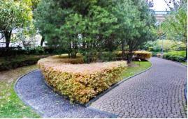 同时,街路植物设计应把握好以下几点原则:一是变化和统一的原则。种植设计要坚持变化与统一、多样与协调的关系。注意统一中求变化,变化中不乏整齐的原则。在小范围内让人感觉色彩的丰富与融合、线条的流动与奔放,大范围让人感受到和谐统一。在变化中寻找统一,在多样中寻求和谐,这样才能保证城市街道园林景观的设计具有识别个性和园林美感。二是对比均匀和节拍韵律的原则。在城市街道园林景观设计中植物设计将一些对比度高的植物按照一种顺序排列组合,达到一种良好的搭配效果。这种布局的原则在于从质地、数量、色彩等方面对比来体现韵律之美。在城市街道园林景观设计中,植物的设计选择考虑树种搭配韵律变化和节拍变化,在这种类似音符的节奏中显示出不同树种的差异性,跳动的音符韵律让人感受到这些树种是有生命的,人们置身在园林景观中会拥有更加开心和愉悦的心情。三是比例尺度的原则。在城市街道园林景观中植物设计不能看做孤立的植物存在,应当把它与周围的空间布局和建筑变化结合在一起,因地制宜地进行植物的设计规划。坚持比例的原则,把植物与景物、植物和空间、植物和植物之间协调好比例关系。考虑到相映成趣的表现手法,照顾到周围事物的比例关系。四是充分体现城市的文化内涵,宣传城市名片。城市有自己丰富的文化底蕴和文化背景,在街路景观设计中,尤其是在植物设计过程中,应充分将本地的文化内涵、文化习惯、民俗风情融入其中,构建人与自然和谐相处的生态环境,让人们从城市街道园林景观中品味出独特的城市风格,感受到城市文化艺术的独特魅力和城市园林景观的高雅气质。