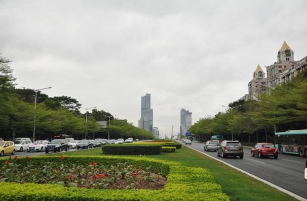 深南大道被称为深圳的一张名片,通常所称的“深南路”包括“深南大道”、“深南中路”和“深南东路”三部分,分别对应南头检查站至皇岗路段(长约19.5公里)、皇岗路至红岭路段(长约4.5公里)、红岭路至沿河路段(长约3.8公里)。深南大道成为这座城市的坐标轴,就像长安街之于北京、东方明珠之于上海。