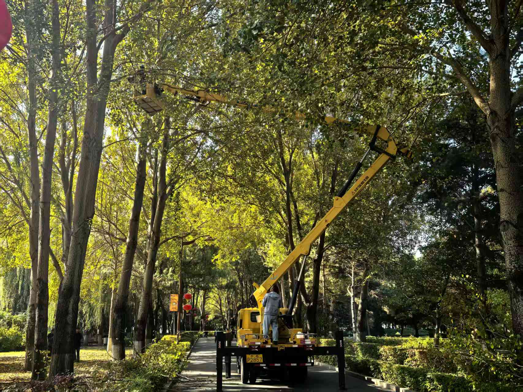 秋意渐浓,为保障园区植物健康生长及游客游园安全,长春公园近日集中开展主园路环路杨树高枝修剪专项作业,全力营造安全、整洁、优美的游园环境。