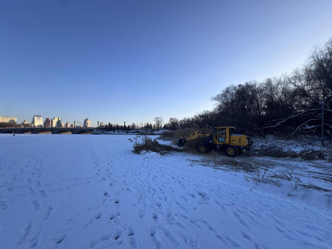 此前,受园区水域水位偏低影响,芦苇收割作业面临较大地形限制。传统人工清理模式不仅效率低下,还易因湿地湿滑引发人员滑倒、磕碰等安全风险,园方遂暂缓部分区域收割工作。为破解这一难题,公园果断调配铲车投入芦苇整治,机械化作业彻底扭转了人工收割的被动局面,在大幅提升清理效率的同时,有效规避了人员涉水作业的安全隐患,筑牢安全生产防线,实现芦苇清理“提质、提速、提安全”三重成效。