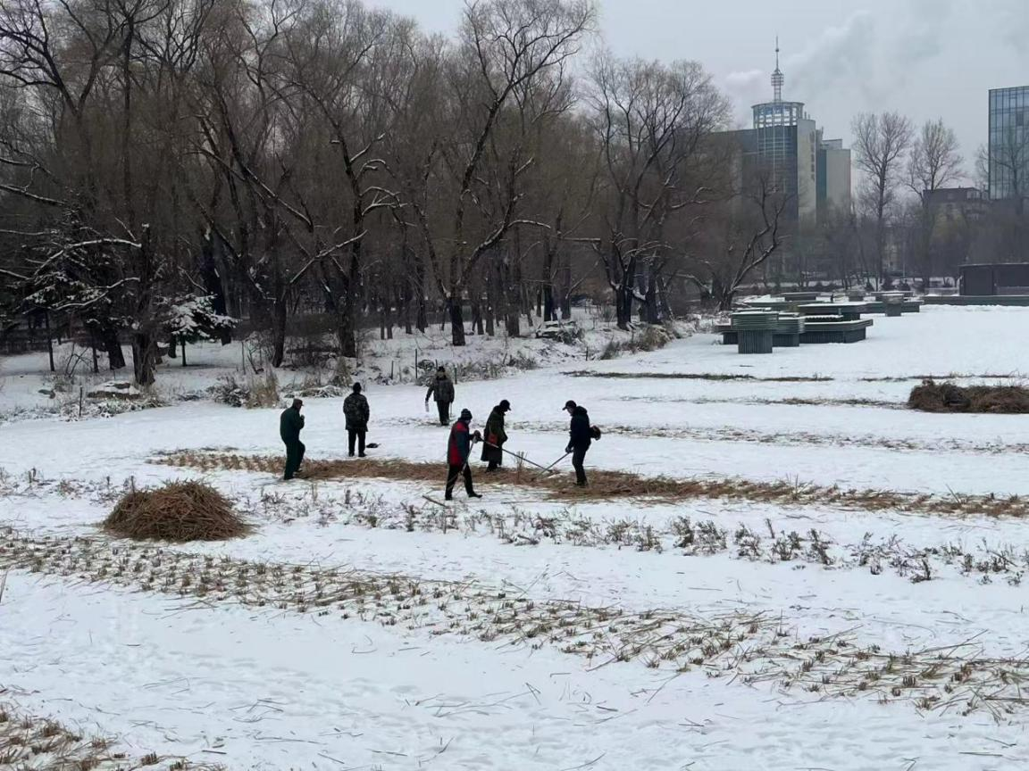 在南湖宾馆区域,公园秉持生态优先理念,未采取全域清理模式,而是针对性割除部分芦苇形成防火隔离带,保留核心区域的芦苇植被。这一举措既有效消除了冬季干枯芦苇可能引发的火灾隐患,又为鸟类等野生动物留存了适宜的栖息空间,兼顾生态保护与安全防控双重需求,切实守护园区生态多样性。