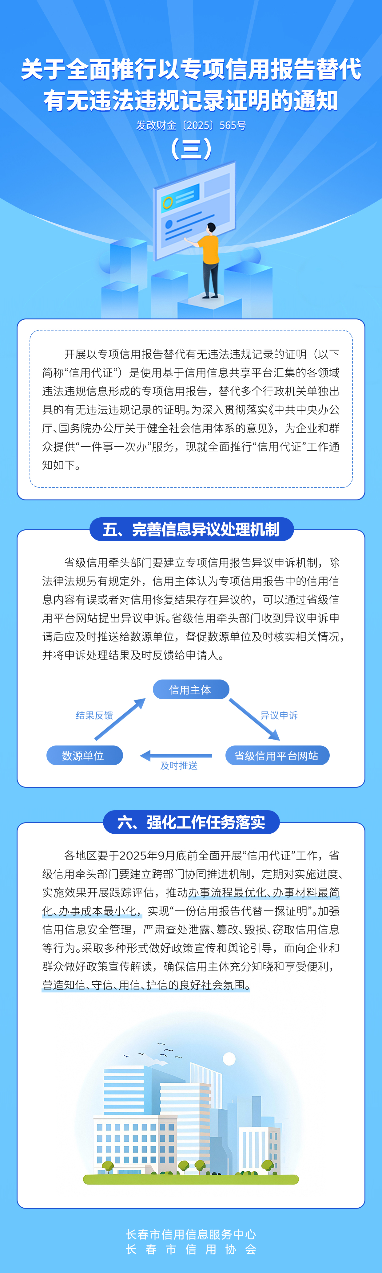 为全面推行“信用代证”,国家发展改革委、公安部、国家数据局于2025年4月29日联合发布《关于全面推行以专项信用报告替代有无违法违规记录证明的通知》。