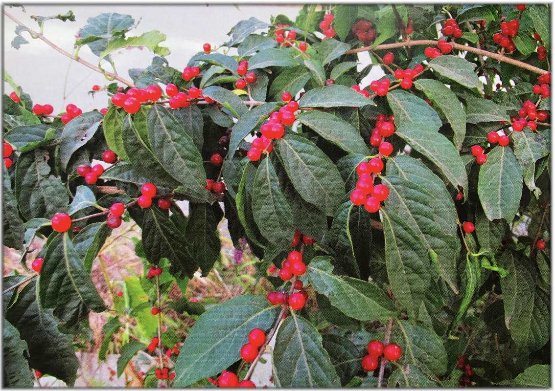 落叶灌木,树皮灰色,条状剥裂。小枝灰褐色,直立或开展,有短柔毛。单叶对生,叶片质地较厚,长卵形或宽披针形,全缘无齿,叶背有灰绿色短绒毛。花梗长1—2厘米,花冠白色后变黄色,2唇形。花期5—6月。浆果红色或橘红色,果期8—9月。