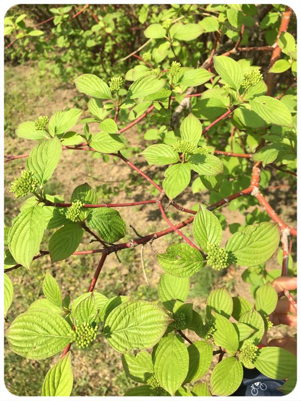 落叶灌木,高达3米。枝条鲜红色,有光泽,皮孔明显;单叶对生,纸质,卵形或椭圆形,边缘全缘或波状反卷,背面灰白色,有疏毛,侧脉5-6对,弧形明显;伞房花序顶生,花白色,花轴与花柄上有密毛;核果长圆形,微扁,成熟时乳白色或蓝白色,花柱宿存;核棱形,侧扁,两端稍尖呈喙状。