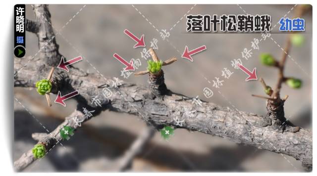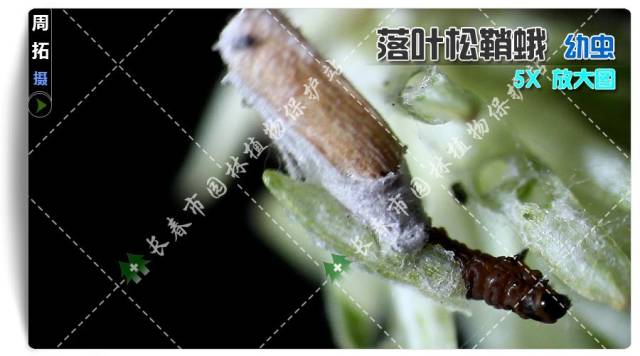 在我市个别地区虫口密度较大,被害树木最初呈现一片灰白色,继而变成枯黄色,严重影响景观,这种害虫在我市寄主为落叶松。