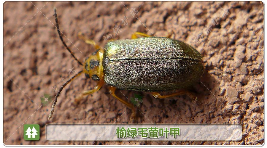 榆绿毛萤叶甲:目前是越冬代成虫上树补充营养阶段,个别地段虫口密度大。我市寄主为榆。