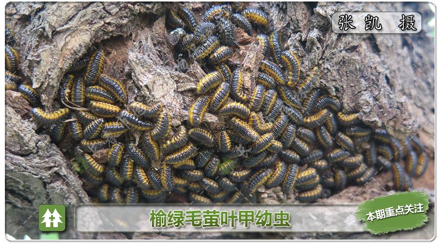 榆绿毛萤叶甲:大量幼虫群集于树干、枝丫处准备化蛹。目前可集中进行防治,降低虫口密度,减轻明年防治压力。我市寄主为榆。