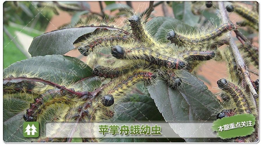 苹掌舟蛾:目前幼虫在寄主叶片上群集为害,老熟幼虫食量较大,可将植株叶片食光。个别地点虫口密度较大。我市寄主为海棠、榆叶梅、山杏、梨、山丁子等多种植物。