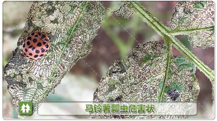 马铃薯瓢虫:成虫和幼虫同时危害,在叶背取食叶肉,形成有平行细线的透明斑。我市寄主有榆叶梅、柳、杂草等多种植物。