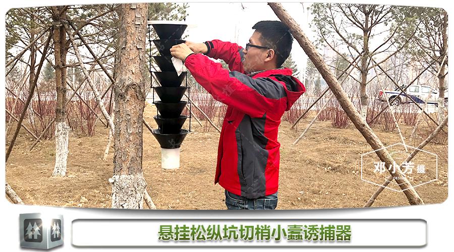 3月下旬园林植保站已向相关单位发放诱捕器150套并已悬挂到各公园、街路,提前为松纵坑切梢小蠹设好了“陷阱”。