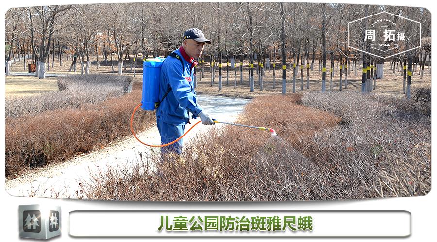 春回大地,万物复苏,随着各种植物枝芽的萌动,一些越冬的病、虫害也饥肠辘辘地蓄势待发。此时,榆紫叶甲、斑雅尺蛾等害虫已陆续聚集在榆树、绣线菊、女贞等寄主植物的芽苞附近,静静地等待着“大餐”的到来。长春市儿童公园在收到我站及时的测报信息后,经我站技术人员指导,在正门绿化带中发现斑雅尺蛾危害,并迅速组织防治。长春市园林植物保护站提醒您,此时需注意给植物补水、修剪,同时需检修喷药器械和药品,及时对早春的病、虫害进行防治,让植物健康茁壮地成长,为我市优美的绿化景观保驾护航。(防治科 周拓)