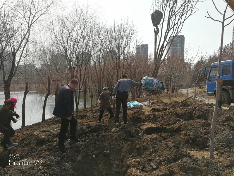 现已栽植完成青皮槐131株、黑松2株、红叶李6株、柳树7株、水曲柳6株、五角枫2株、紫叶稠李6株、白榆3株、山杏16株、山里红6株、忍冬13株。同时对长势高大的黑松进行了二次修剪,以减少养分流失,提高树木成活率。