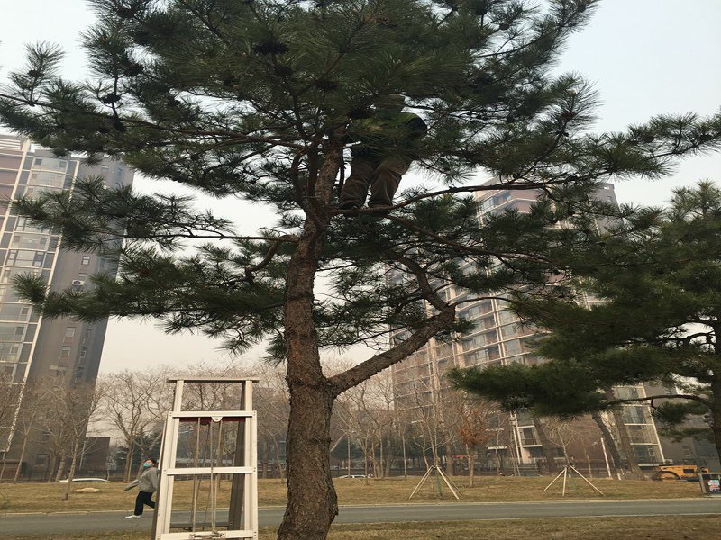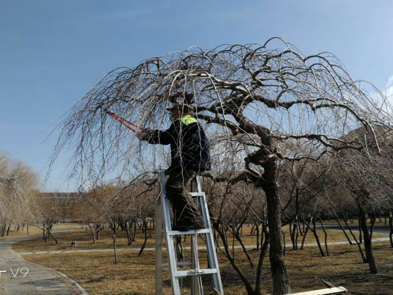 对存在安全隐患枯死树、风折枝、病虫枝等进行先修剪,并对残枝及时处理。然后根据树木长势、树形、协调比例,剪去多余的内膛枝、交叉枝、影响树形树势的外侧延展枝。重点对公园内的113株黑松、300余株家杏,76株山杏、部分柳树、杨树、垂榆、桃叶卫矛等进行了精细修剪,并对修剪后的残枝及时清运,共清理20余车。