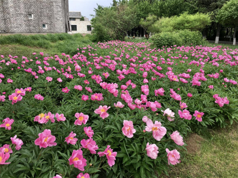 宿根花卉园内栽植有芍药、荷包牡丹、百合、大花萱草、马莲、狼尾草、月季、黑心菊、马鞭草、千屈菜、落新妇、玉带草、金鸡菊、松果菊、蛇鞭菊、虞美人、福禄考等近二十种宿根花卉,以大片连接的方式栽植,创造出颜色不同的花海景观,每年从五月到九月花开不断,色彩缤纷。花间小路纵横交错,还有可爱的卡通形象雕塑供游客拍照留念,游客行走于漫漫花海中,每一处驻足的地方都有不同的景色。