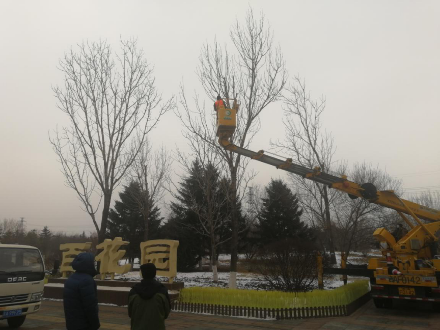 利用高空作业车对园区内高大乔木进行修剪整枝,对于过密生长的树木,清枝除侧,并将清理出的树枝枯木及时拉运,同时对园区内的枯枝落叶进行清理,为春季栽植乔灌木打好基础;三是谋划花卉栽植提升工作,已整理规划完花卉设计方案,做好花卉栽植准备工作;四是压实安全生产管理,春季随着气温回升,园区路面、湖面有开化现象出现,持续加强湖面安全管理,不间断巡视巡察,利用条幅、广播进行提醒游客注意游园安全。