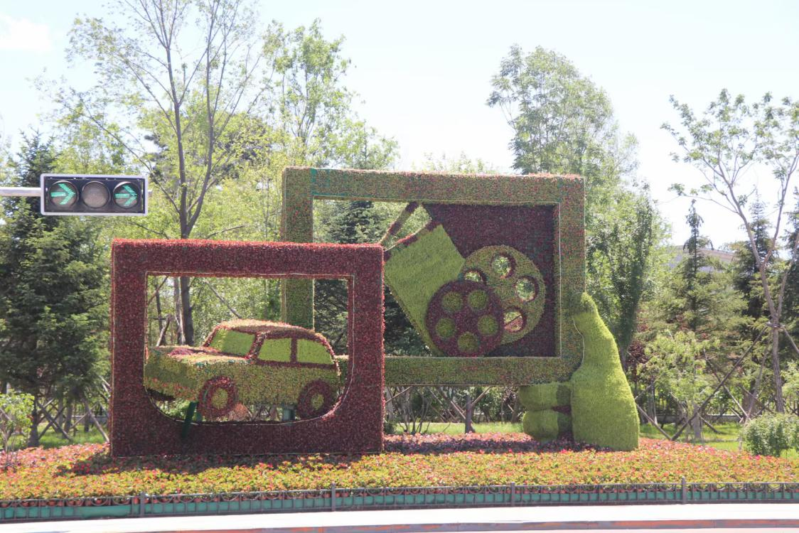 人民广场南口设置“魅力长春”主题立体花坛,以红、黄为主色调,以历史卷轴和长春的都市形象图片为背景,搭配各色花球、小型立体花卉绿雕,表现了在中国共产党的领导下,长春将永葆青春活力、一往无前、不断发展。该组花坛6月8日至6月13日造型构件安装完成,预计6月25日植物栽植完成,占地200㎡,覆盖四季海棠穴盘苗及五色草,地被花卉栽植预计6月25日栽植完成,使用一串红、孔雀草、矮牵牛以及桑贝斯凤仙。