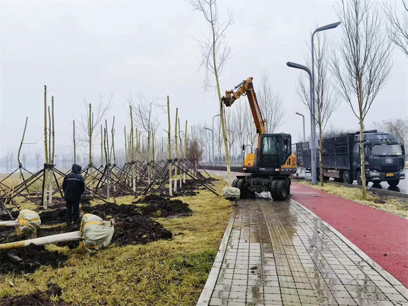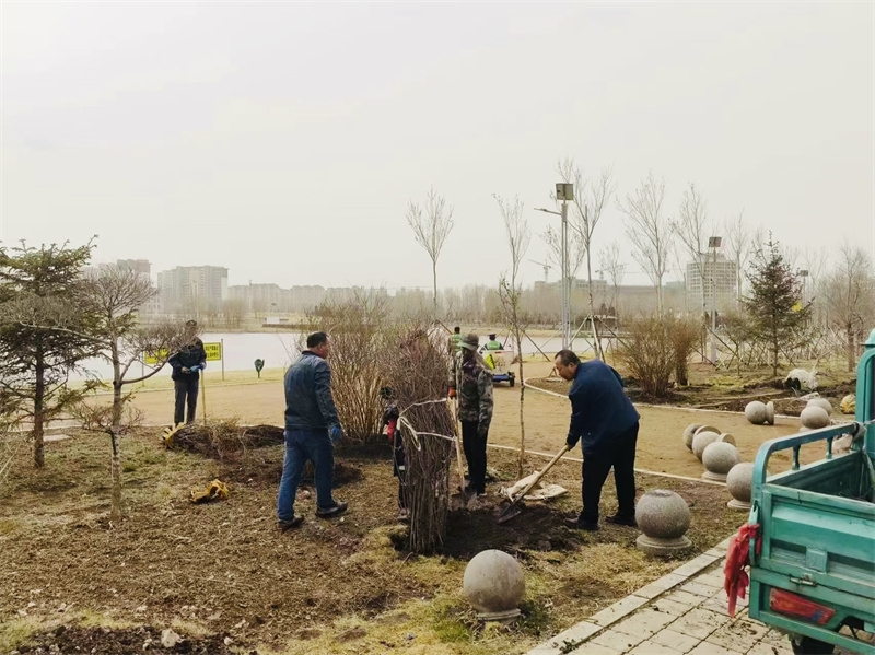 本次春植区域主要是天香公园的园区外围、牡丹广场及各出入口。根据天香公园各点位特色,西部新城公园绿地管理中心技术人员在树种选择上注重防风遮阴的实用效果和色彩搭配的季相景观效果,栽植杨树、柳树、百花花楸、山杏、暴马丁香等乔灌木,提高沿路景观的观赏延续性。栽植过程严格遵循绿化种植施工规范,随挖随运、随检随种,减少滞留、及时浇水,最大程度确保栽植苗木的成活率。目前已完成全部栽植任务,累计栽植乔灌木1700余株。