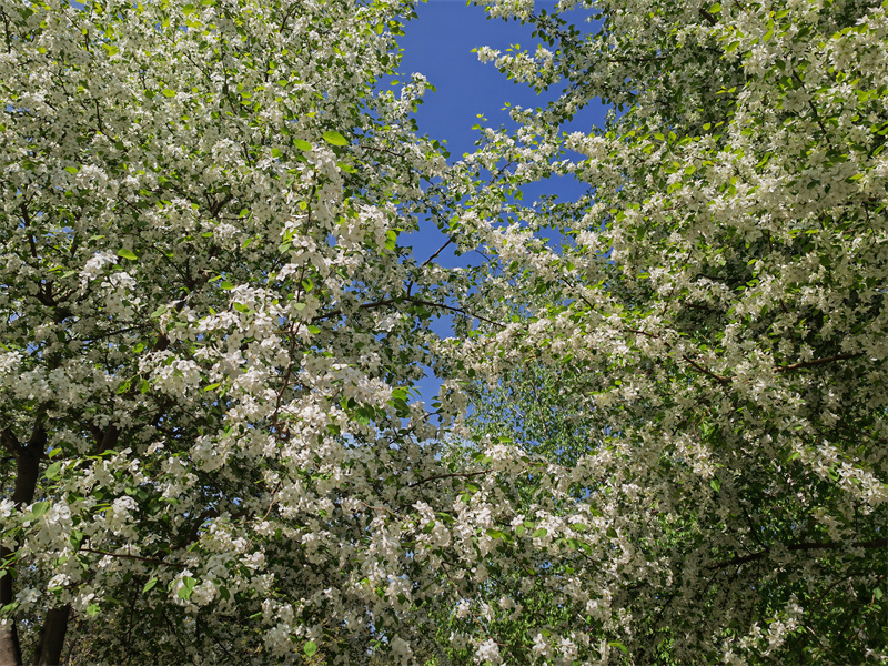 5月初,栽植于友谊公园1180米环园路的412株山荆子,犹如一位位头顶繁花的少女,亭亭玉立,惹得游人纷纷驻足观赏。