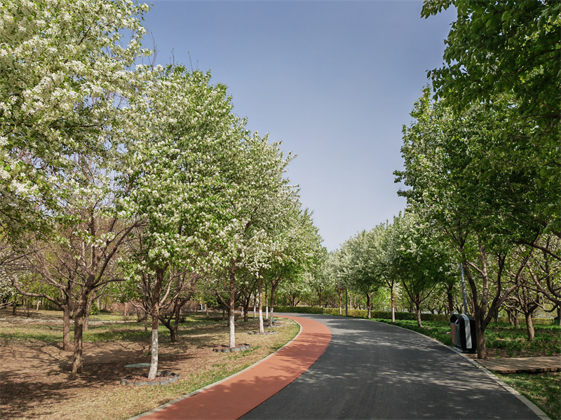 友谊公园的山荆子于2016年栽植,当时树高仅3米,经过公园8年来的用心养护,如今环园路两侧的山荆子树高已达6-7米,树冠广圆形,冠幅达4-5米。白色小花集生在短枝顶端,花繁叶茂,树姿优雅娴美,是优良的观赏树种。