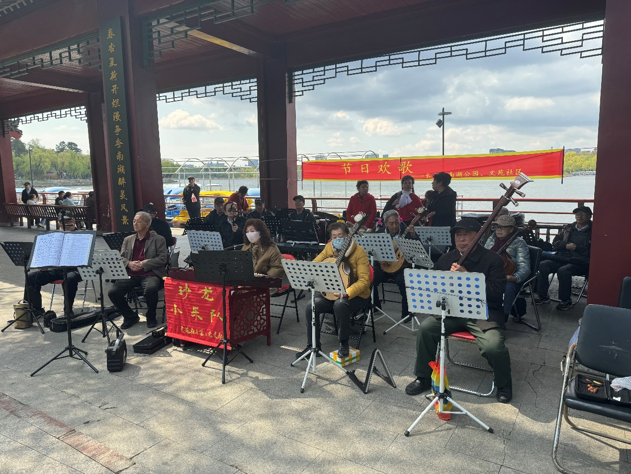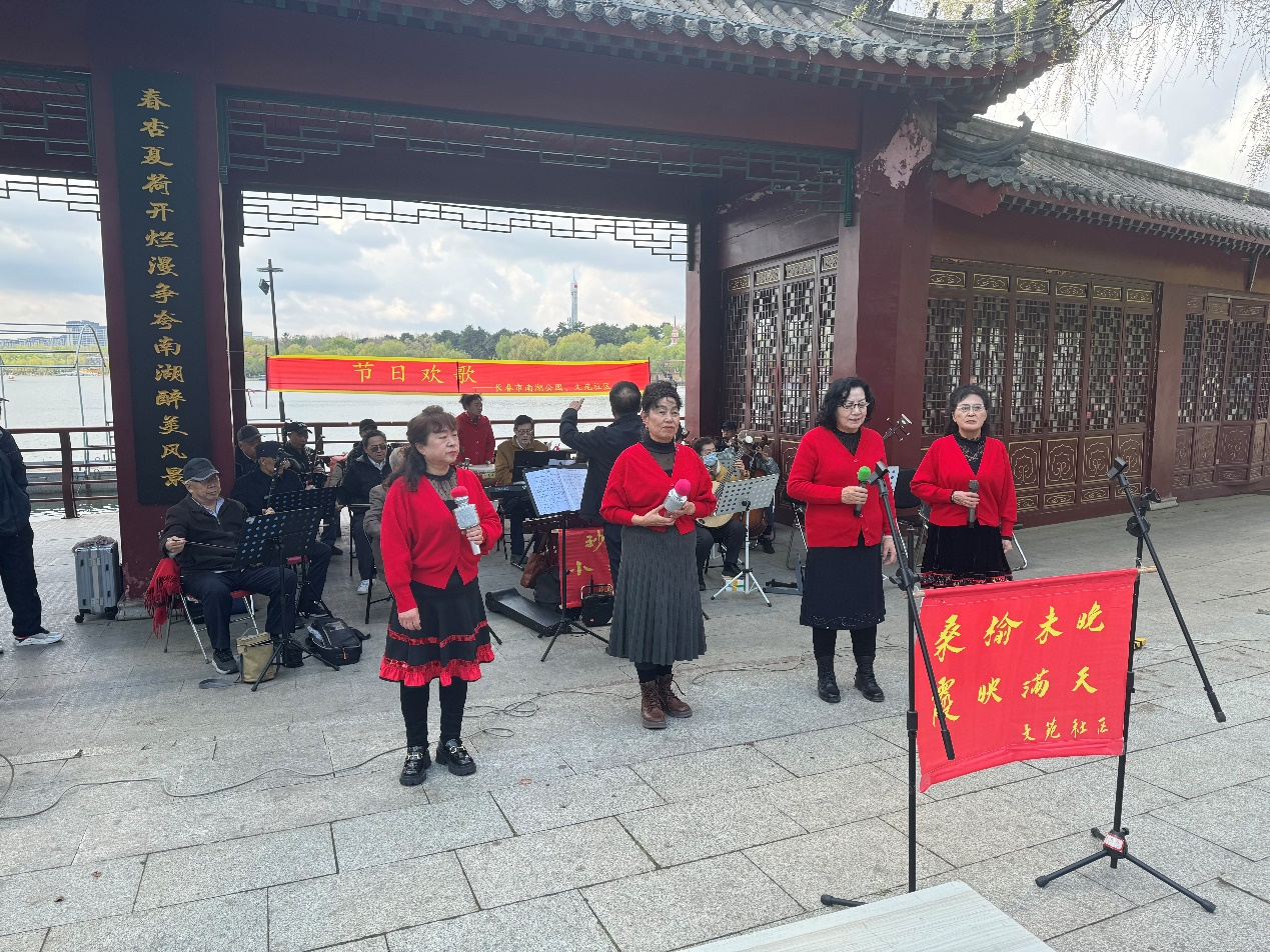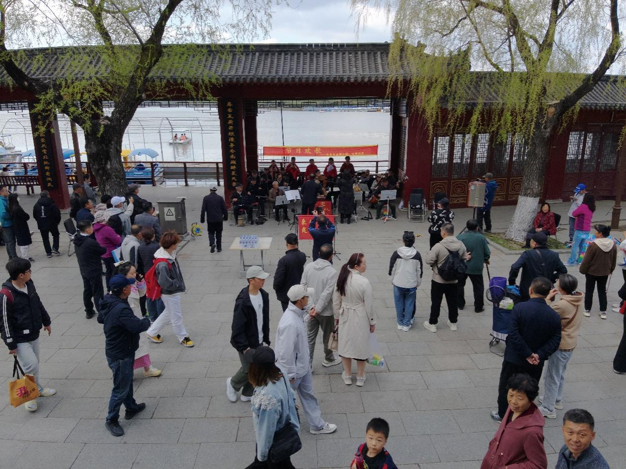 5 月 4 日,长春市南湖公园内洋溢着欢乐祥和的节日氛围。为热烈庆祝五一劳动节,南湖公园携手前进街道文苑社区,在公园二号船台举办了一场别开生面的节日欢歌音乐会,为市民和游客带来了一场精彩绝伦的文化盛宴。