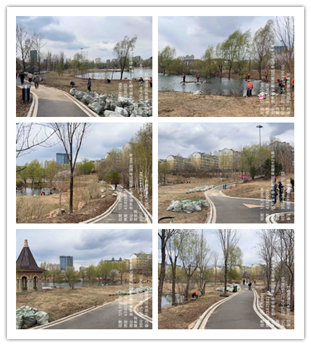4月15日起,南城中心开始推进该公园绿地的全面清理工作。截至4月30日,清理绿地内树木萌蘖、落叶、枯草约7公顷,清理3.8公顷湖体及沿岸的芦苇、蒲草、砂石等杂物,修剪树木1300余株,陆续完成3次植物病虫害防治工作以及园区环境卫生全面清理工作。原本杂乱无序的植物变得整洁有序、层次分明,环境面貌得到了显著提升,园区面貌焕然一新。