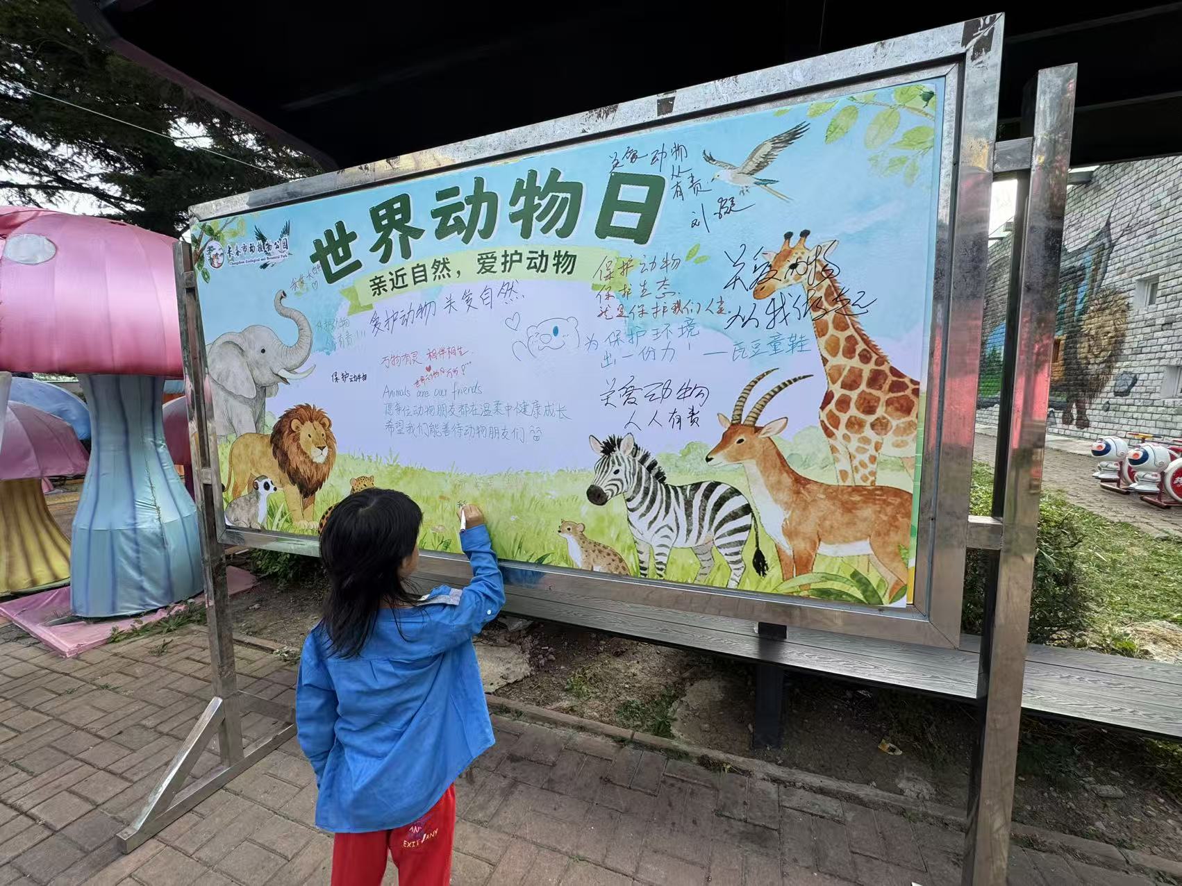 此外,公园研学中心门前的动物保护寄语板上,写满了游客们真挚的祝福——从孩子稚嫩的“希望小动物们永远开心”,到成年人郑重的“愿人与自然和谐共生”,每一句留言都是这次活动中最珍贵的“守护印记”。