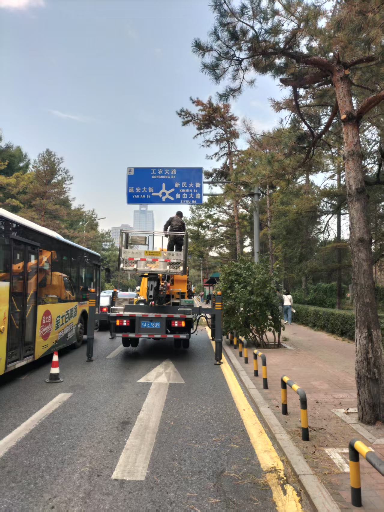 市民随手拍,绿化秒做“微整形”——绿管中心对所辖街路树木进行精修,交通指示牌清爽“露脸”