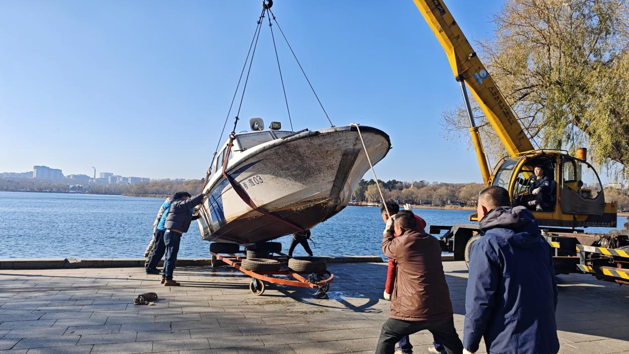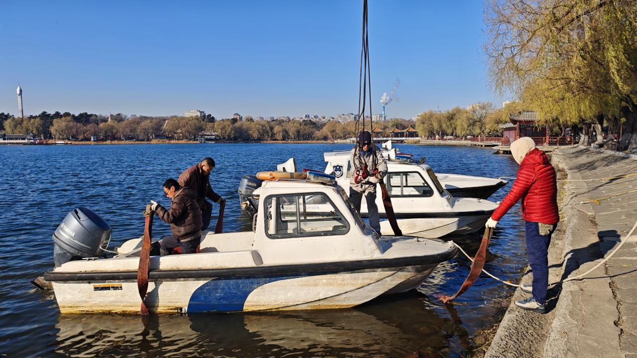 下一步,公园将启动快艇维修保养工作,为来年开湖履职蓄能。针对初冬水域安全管理,通过工作人员沿湖巡视、悬挂醒目警示条幅、广播循环播报安全提醒等举措,持续织密安全防护网,为市民游客营造安全、和谐的游园环境。