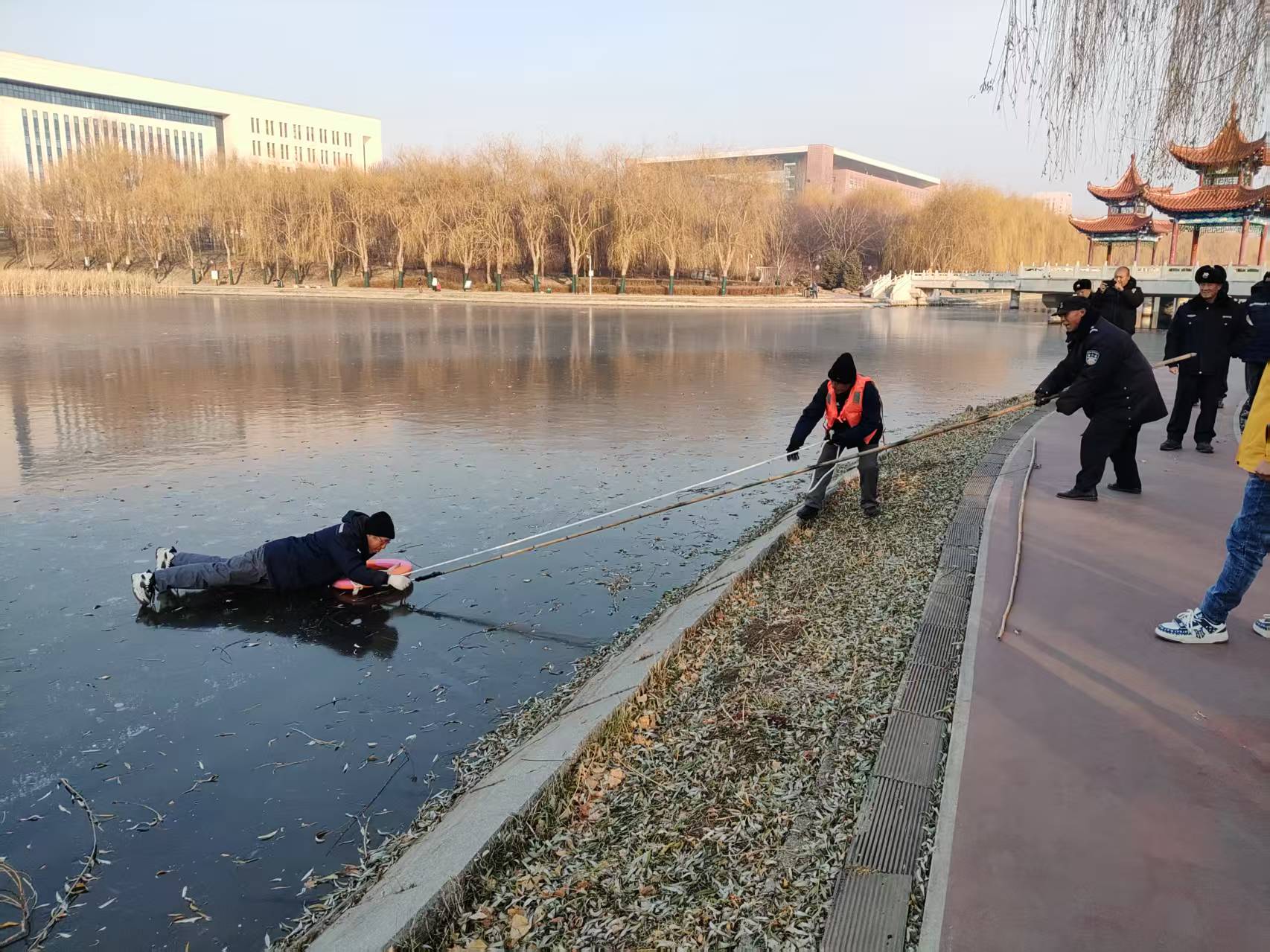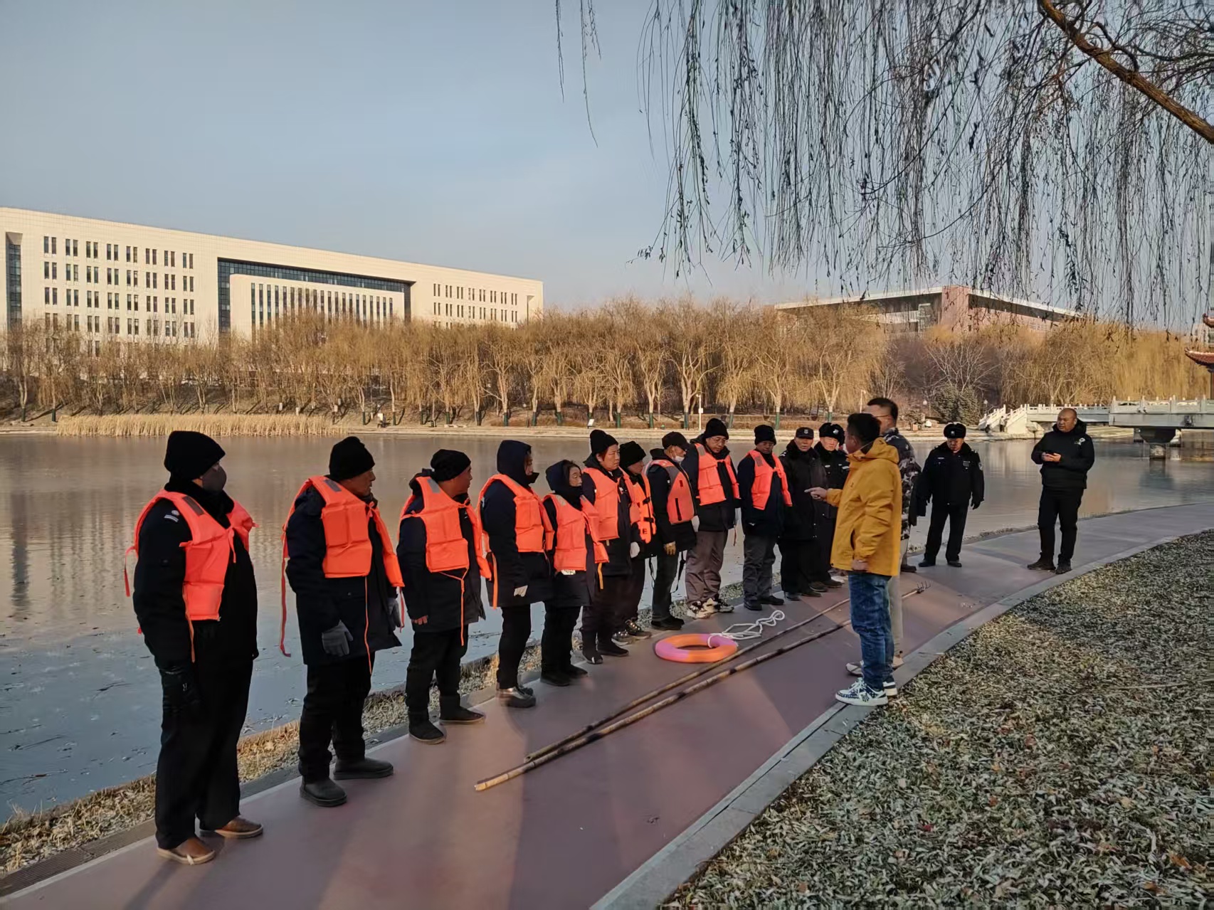步入初冬,冰层薄弱易发生坠冰险情。为切实保障市民、游客人身安全,提升物业工作人员应急救援处置能力,友谊公园管理所组织18名物业人员开展了冬季冰面救生专项演练。