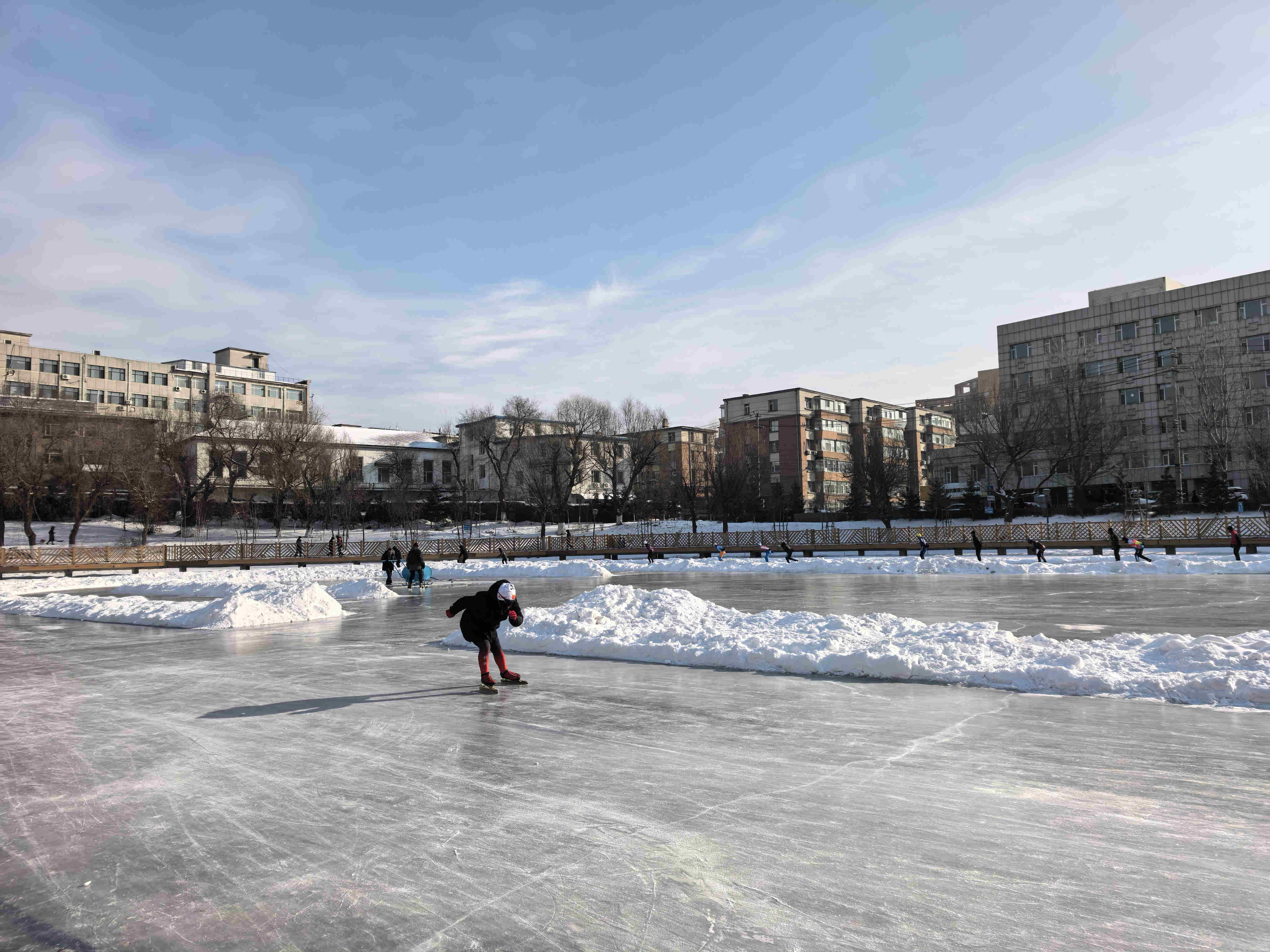 举行了开冰仪式后,市民朋友在工作人员的引导下有序进入冰场,开启了精彩纷呈的冰雪之旅。冰场上,既有疾驰如风的滑冰健将,也有蹒跚学步的入门新手,热闹非凡的景象构成了冬日里一道充满活力与激情的风景线。