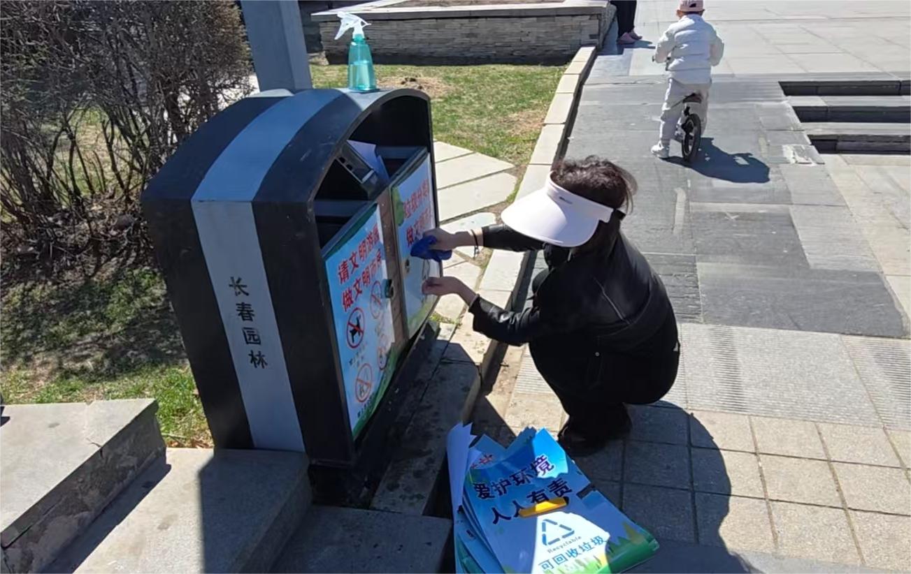 为提升城市文明建设质效,扎实践行正确政绩观,涵养文明游园风尚、优化园区环境。近期,长春公园结合园区设施实际,秉持厉行节约、修旧提质、精准发力的原则,组织职工给垃圾箱“换装”。通过张贴文明宣传贴纸翻新垃圾箱,低成本完成环境提质与文明宣传双向提升,有效夯实公园精细化管理成效。