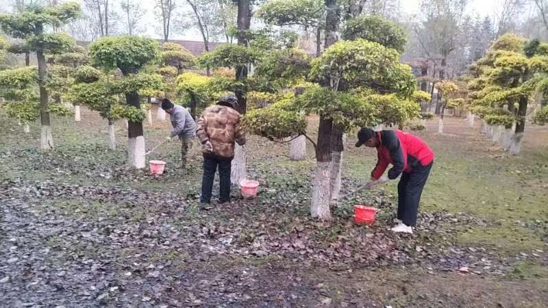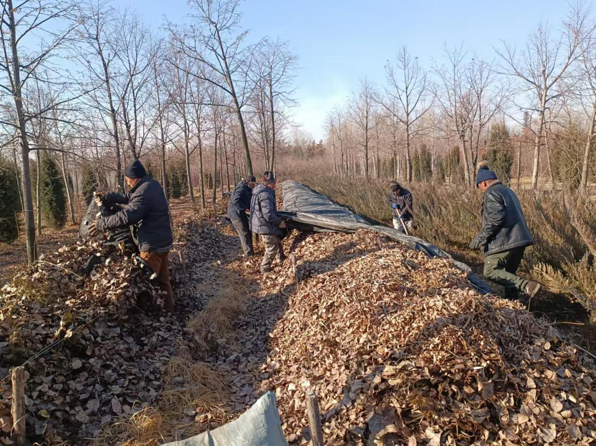 公园方面:百花园首次尝试采用木屑对彩化用地进行土壤保墒,不仅美观整洁,而且具有防风保温的作用,尤其对一些宿根类植物具有较好的保护效果。对全园乔灌木进行冻害防治及修剪工作。抓住秋季病虫害防治关键期,对10余万平方米草坪、彩化用和2000余株(丛)乔灌木喷洒赛利吉。开展清园、封地工作,为明年植物及土壤健康提供保障。百木园抢抓入冬前晴好天气完成树木涂白工作,防止低温对树皮组织造成伤害及部分病虫害的发生。对全园草坪、树木,尤其是古树及其后备资源进行封冻水浇灌,防止冬季和早春发生干旱,同时保护植物根系,增强抗寒能力。 圃地方面:花卉苗圃对温室大棚进行维修,更换部分老旧、破损的通风口膜;对温室保温被进行调整、加固;检修供暖管线,加固门窗、棚膜,保障温室植物温暖过冬。对地栽观赏草浇灌封冻水、进行根际培土;对部分球根类花卉如芭蕉、大丽花等进行球根储存;对专类花卉如杜鹃等持续开展养护确保明年展出效果。第一育苗场以落叶和遮阴网作为防寒材料,对部分易受冻害的苗木进行覆盖,给今春扦插的小苗覆盖防寒土,减少土壤水分蒸发,为苗木提供一个相对温暖的冬季环境。