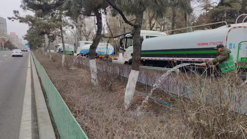 此次树木修剪工作注重“科学规划,精细操作”,一方面,依据树木生长特性和街路实际情况,精准识别并清除枯折枝、内膛枝、过密枝、交叉枝和病虫枝等,保树冠结构合理,通风透光,保障树木健康生长。另一方面,针对部分行道树适当进行定干修剪,修剪主干下部的侧枝,提高分支点高度,不仅有效解决树枝低垂影响行车视线的问题,还兼顾了行道树的景观效果与行人安全。树枝修剪完成后,养护人员及时涂抹伤口愈合剂进行伤口保护,同时清理现场产生的绿化垃圾,确保修剪区域的干净整洁,避免对周边环境产生影响。现已对辖区内人民大街、景阳大路等重要街路的750株树木进行了修剪,预计在3月底完成首轮修剪。同时,养护人员也正加紧对人民大街、景阳大路、南湖大路、西安大路等7条重要街路约6000株黑松进行浇灌返青水。